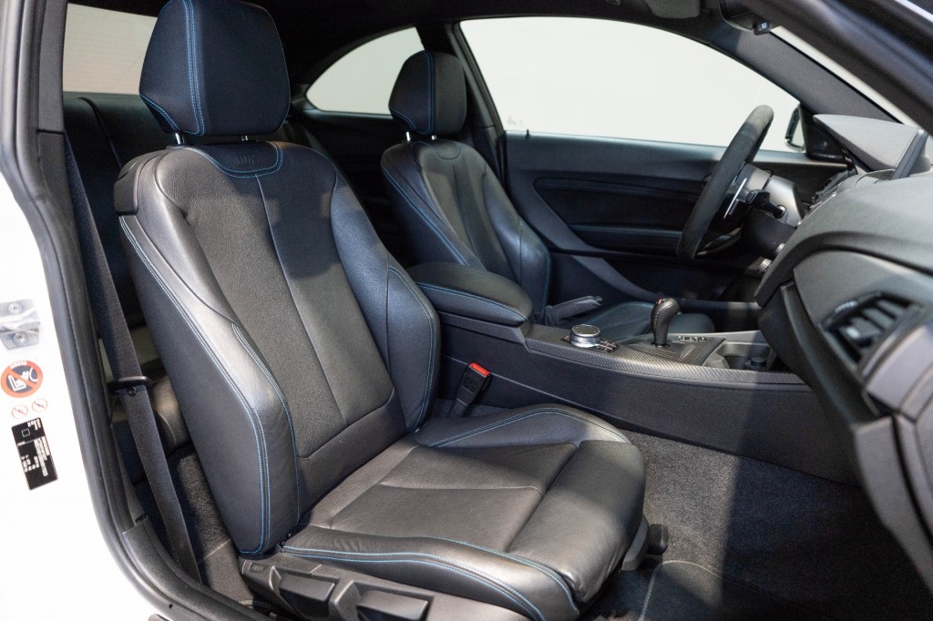 Waanzinnig dikke BMW M2 met een heerlijk carbonpackage! De M2 staat er super bij met een mooi optiepakket, denkt u o.a aan: Harman Kardon audio, Cruise control, Parkeersensoren voor en achter, Parkeercamera, Volledig leder, Carbon package binnen en buitenzijde, Blauwe M-Sport remzadels, Alcantara M-Sportstuur, Extra info scherm bij ventilatierooster, 19 Inch LM velgen. De M2 staat op bijna nieuwe banden en heeft voorlopig geen onderhoud nodig ( 22.000 KM of 12-'27)