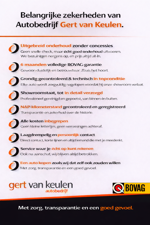 Wij adverteren met -volledig rijklaar- prijzen! U weet dus direct waar u aan toe bent. Dus geen verrassingen achteraf! Geen bijkomende kosten voor rijklaar maken!