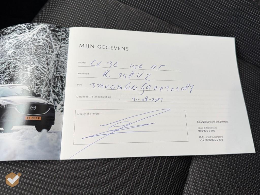 Deze Mazda CX-30 2.0 eSA-G Sportive Hybrid Automaat is een nette en goed onderhouden auto van de 2e eigenaar met 56.000 echte kilometers! De auto is voorzien van alle Sleutels, Boekjes en de Nationale Autopas (RDW Tellerkaart)! Wij adverteren met eerlijke en duidelijke prijzen! Ondanks onze uiterste zorgvuldigheid kunnen aan deze advertentie geen rechten ontleend worden.Herkomst is Denemarken met een nieuwwaarde van € 39.00,-